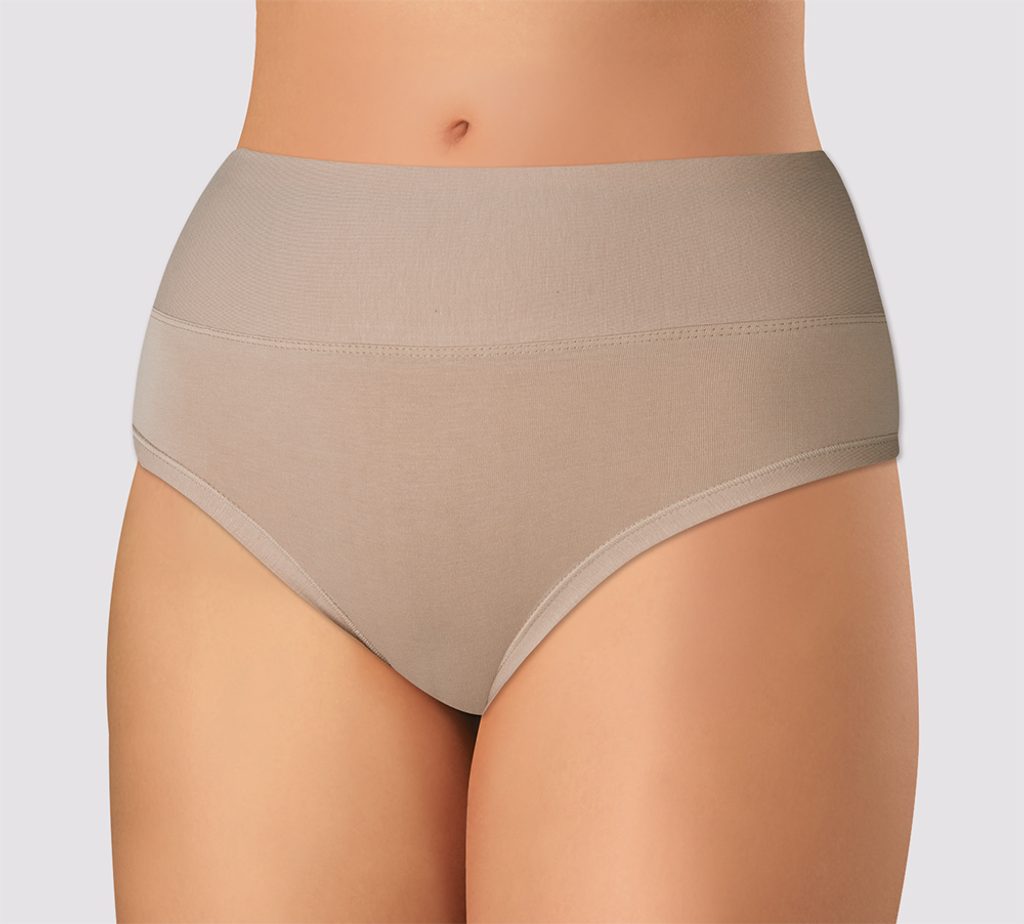 Dámske nohavičky vyššieho strihu. Nohavičky sú vyrobené z veľmi kvalitnej elastickej bavlny s prímesou vlákna Tactel, ktoré dodáva materiálu hebkosť a priedušnosť. Materiál sa skvele prispôsobí postave a drží stály tvar bielizne. Vďaka širokému lemu v páse ideálne priliehajú k telu a majú čiastočne sťahovací efekt. Komfortný lem okolo nôh zaručuje, že sa nohavičky nezarezávajú do stehien. Bavlnený klin.