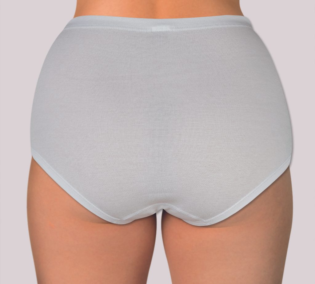 Bavlnené nohavičky vysokého strihu. Nohavičky sú vyrobené z jemného 1x1 ribu. V páse je zašitá guma a okolo nôh je komfortný lem. Bavlnený klin.