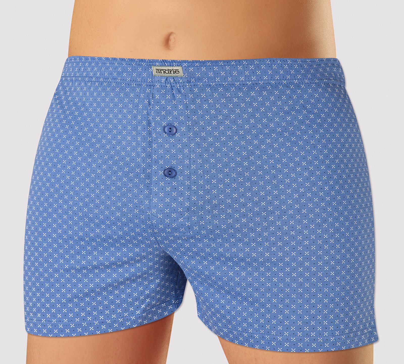 Pánske trenírky Andrie so zakrytou mäkkou gumou v páse sú vyrobené z kvalitnej bavlny. Na nohaviciach sú malé rázporky pre väčší komfort a pohodlie. Rázporok s rozopínaním na dva gombíky.